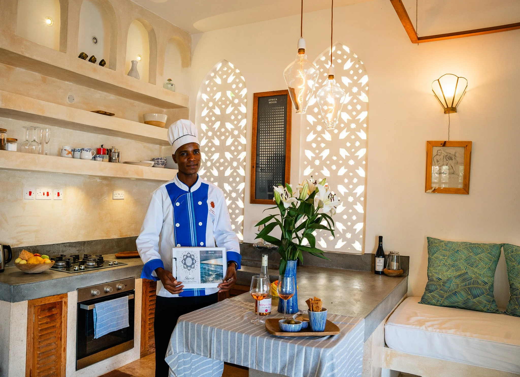 Like all the Mawimbi properties, this cottage is set facing the Indian Ocean. This 1 bedroom cottage features a king-size bed and en-suite bathroom, a tropical garden with ancient baobabs, and palm trees, a private pool, spacious veranda, upstairs terrace, kitchen and living area, as well as access to the large shared swimming pool. Chef, masseuse and babysitter available additionally, on request.